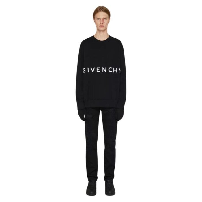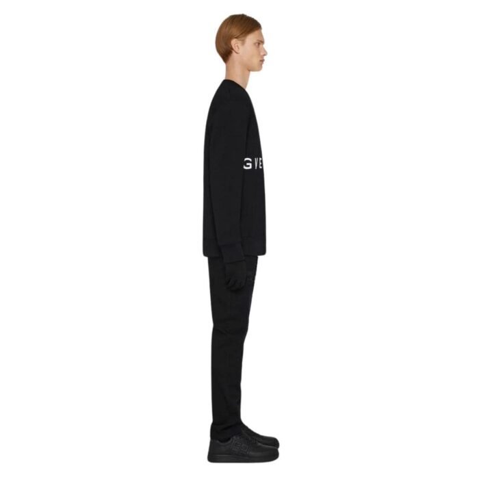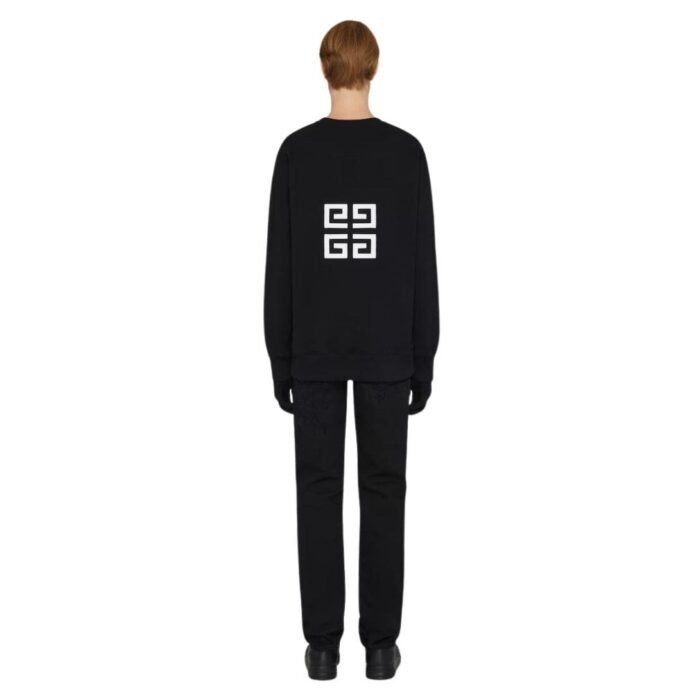 The sweatshirt features a sleek, slim fit that contours to the body, providing a streamlined silhouette without sacrificing comfort. The 4G logo—a signature emblem of the Givenchy brand—is prominently displayed on the chest, rendered in a contrasting color for a touch of sophistication. This subtle yet distinctive branding adds a contemporary edge to the piece, setting it apart from more conventional sweatshirts.