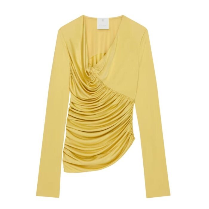 Introducing the Givenchy Draped Top In Jersey, the Givenchy draped top in jersey fabric is a modern masterpiece, effortlessly blending comfort with high fashion. Its fluid silhouette drapes elegantly, creating a sense of movement and sophistication. Crafted with meticulous attention to detail, this top features subtle yet striking design elements that elevate its aesthetic. Whether paired with tailored trousers for a polished look or with denim for a more casual ensemble, it exudes effortless style and versatility. The jersey fabric offers softness and stretch, ensuring comfort and ease of wear. With its timeless appeal and contemporary design, the GIVENCHY draped top is a wardrobe essential for the fashion-forward individual.