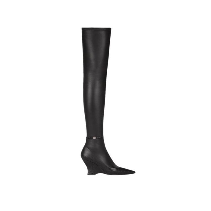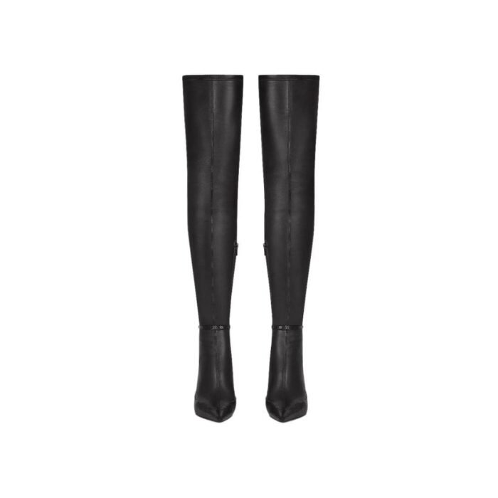 The Givenchy Raven Over-the-Knee Boots in Leather and Ayers exemplify the brand’s dedication to luxury, sophistication, and bold design. These striking boots blend high-quality materials and meticulous craftsmanship to create a statement piece for any fashion-forward wardrobe. GIVENCHY RAVEN OVER THE KNEE BOOTS IN LEATHER AND AYERS