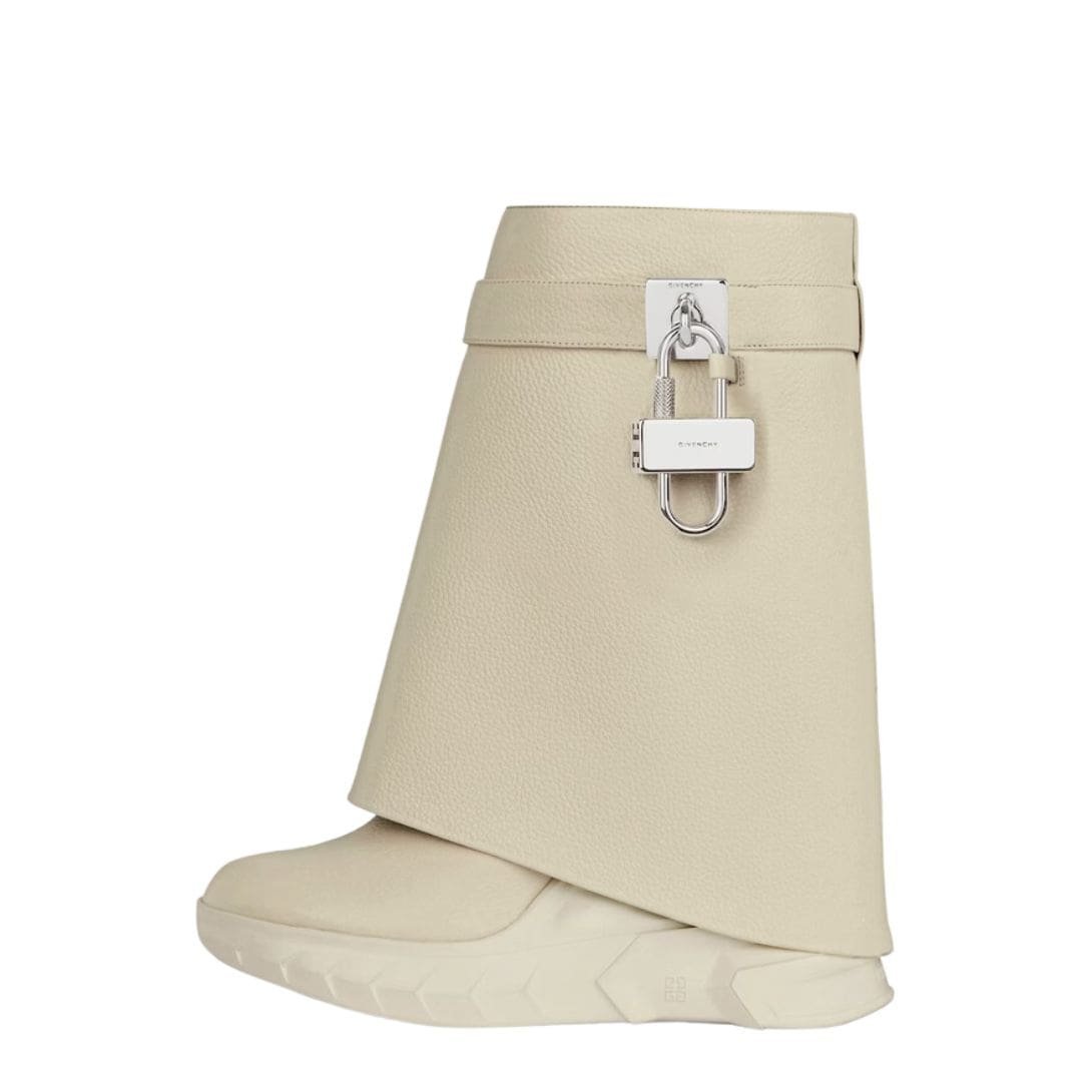 These boots are a quintessential choice for those seeking to make a bold fashion statement. They effortlessly bridge the gap between classic elegance and contemporary edge, making them a versatile addition to any wardrobe. Whether paired with leather jackets for a rebellious look or with tailored trousers for a refined finish, the Givenchy Shark Lock Biker Ankle Boots embody a sophisticated rebellion that is both timeless and modern.