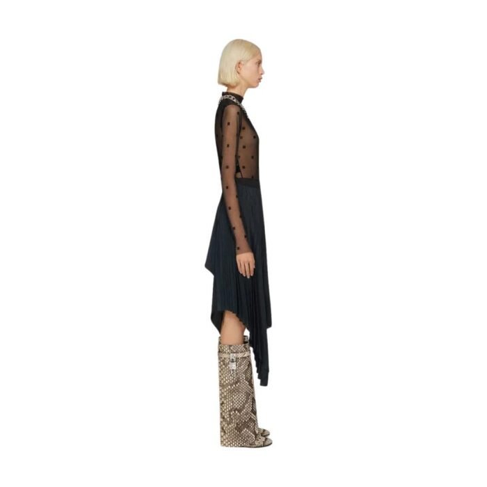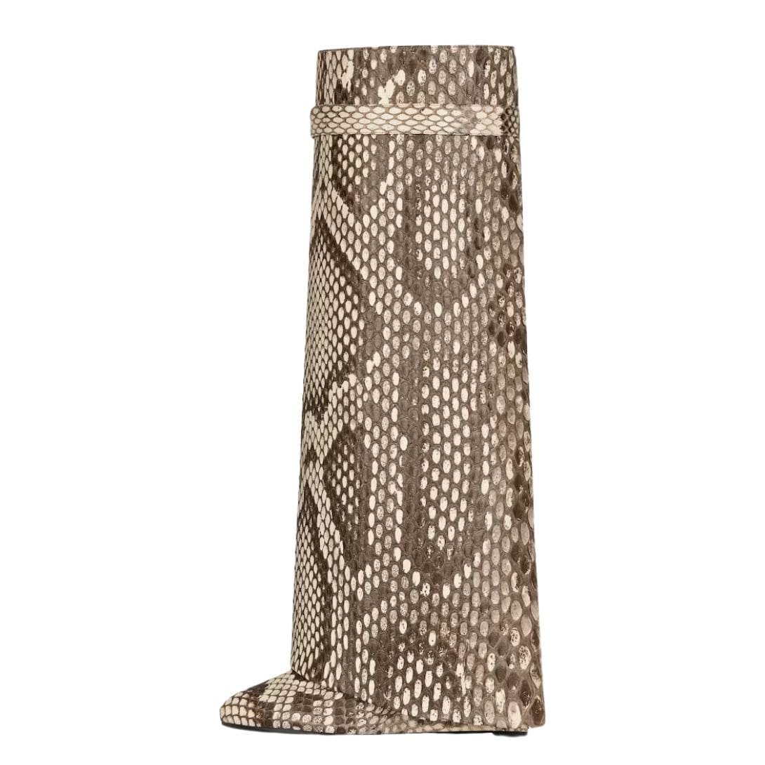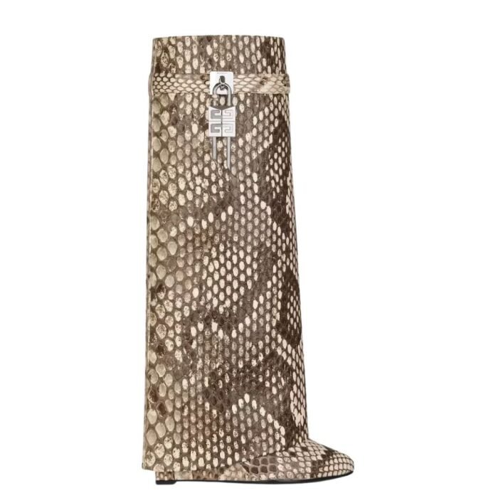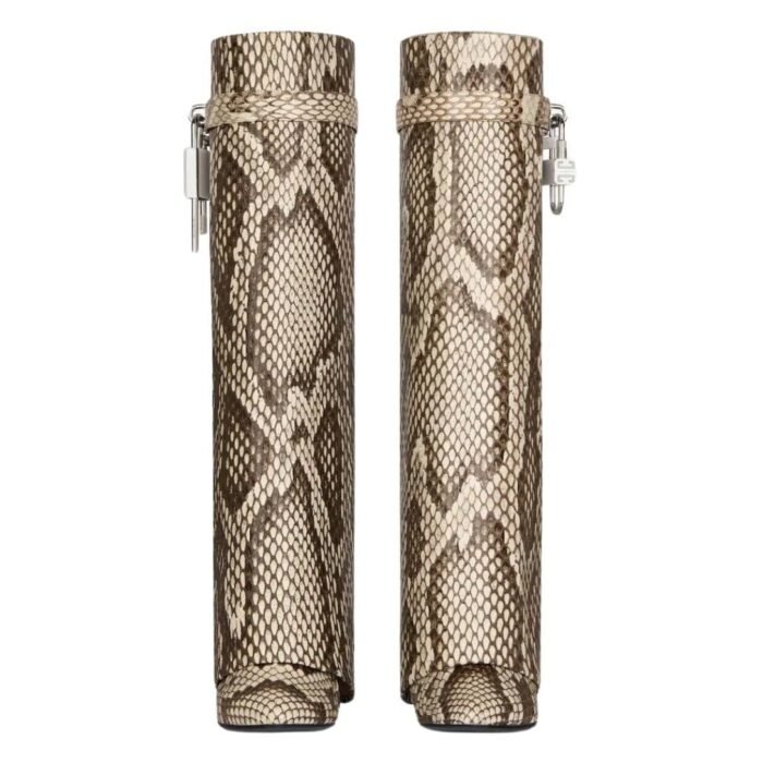 are designed for the fashion-forward individual who isn’t afraid to make a bold statement. Their luxurious python skin and unique design elements make them not only a footwear choice but a piece of art that elevates any outfit. Givenchy’s attention to detail and high-quality craftsmanship ensure that these boots are not just visually stunning but also durable and comfortable, perfect for those who seek both style and substance in their wardrobe.