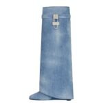 In summary, the Givenchy Shark Lock Boots in Washed Denim are a bold, fashion-forward statement piece that seamlessly blends high fashion with everyday wearability. Their unique design, premium materials, and iconic detailing make them a must-have for anyone looking to make a stylish impression.