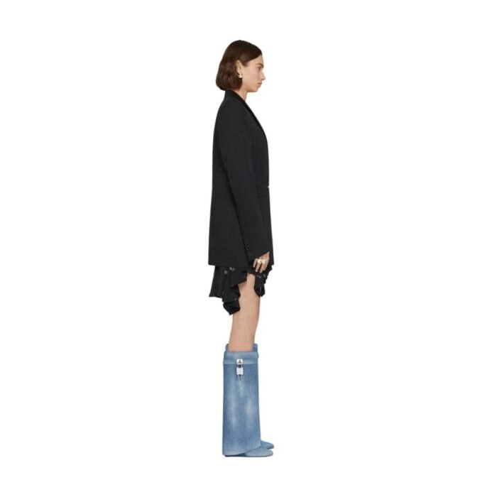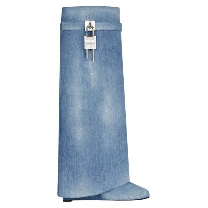 In summary, the Givenchy Shark Lock Boots in Washed Denim are a bold, fashion-forward statement piece that seamlessly blends high fashion with everyday wearability. Their unique design, premium materials, and iconic detailing make them a must-have for anyone looking to make a stylish impression.