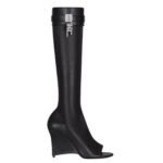 Whether paired with tailored trousers for a polished look or a flowing dress for a more dramatic flair, the Givenchy Shark Lock Stiletto Sandal Boots elevate any ensemble. The bold aesthetic is further enhanced by a refined color palette that complements a variety of outfits, making them a staple piece in any fashion-savvy individual’s collection.