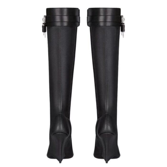 Whether paired with tailored trousers for a polished look or a flowing dress for a more dramatic flair, the Givenchy Shark Lock Stiletto Sandal Boots elevate any ensemble. The bold aesthetic is further enhanced by a refined color palette that complements a variety of outfits, making them a staple piece in any fashion-savvy individual’s collection.