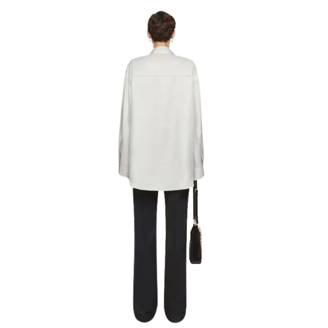 Introducing the Givenchy Shirt In Silk With Crystals is a mesmerizing blend of luxurious fabric and dazzling embellishment, epitomizing refined glamour with a modern edge. Crafted from sumptuous silk, this shirt drapes elegantly over the body, offering a smooth and lustrous texture. The addition of shimmering crystals intricately adorning the fabric elevates the piece to a new level of opulence, catching the light with every movement and imparting a sense of celestial allure. Whether worn alone as a statement piece or layered under a blazer for a touch of sparkle, this Givenchy shirt exudes sophistication and sophistication. With meticulous attention to detail and impeccable craftsmanship, it is a testament to the brand’s commitment to luxury and innovation in contemporary fashion.