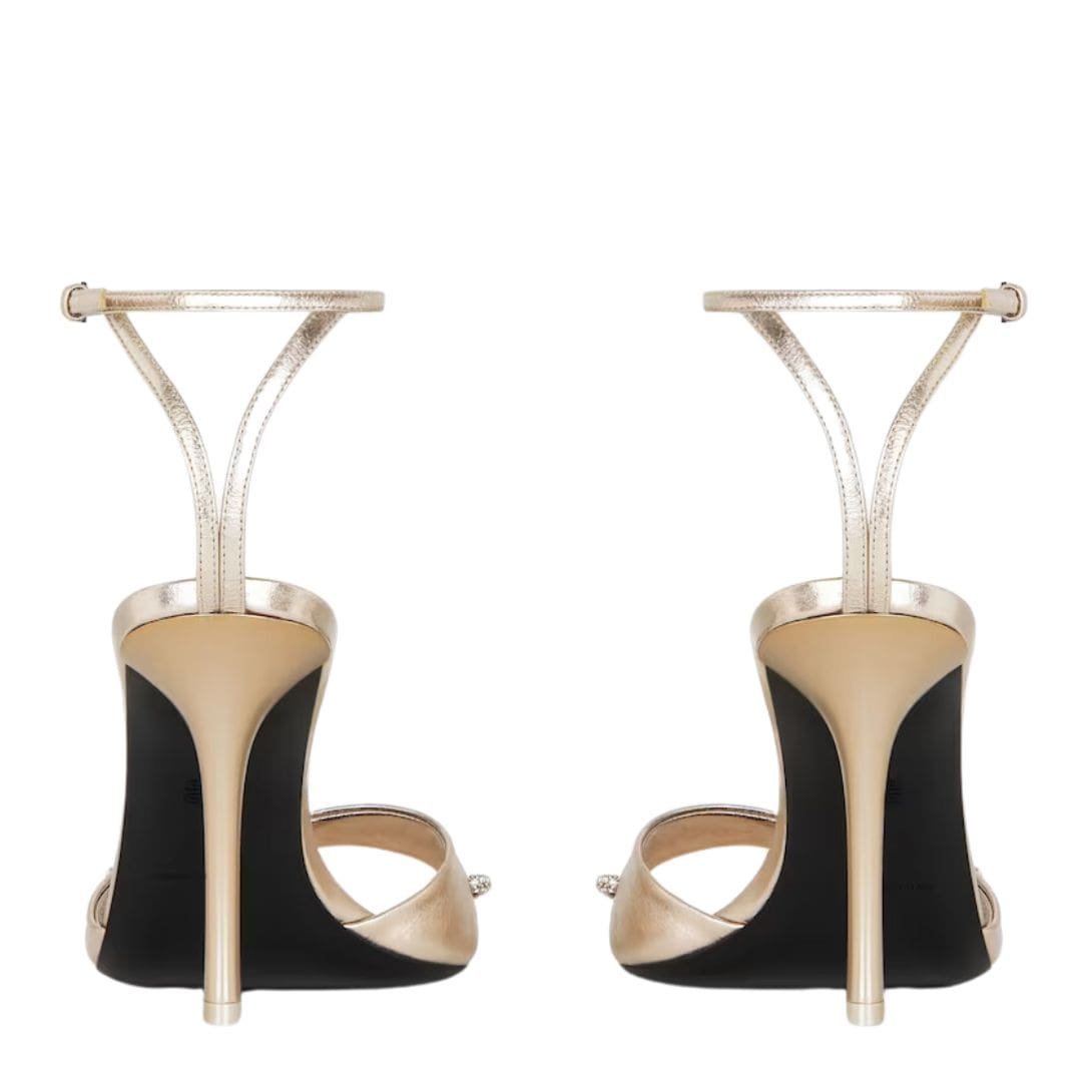 Adorned with sparkling crystals, the sandals exude a touch of glamour, catching the light with every step. The strategically placed crystals not only enhance the overall aesthetic but also add a unique flair, ensuring that these sandals stand out in any setting. The combination of the smooth leather and shimmering embellishments creates a striking contrast, embodying the essence of high fashion.