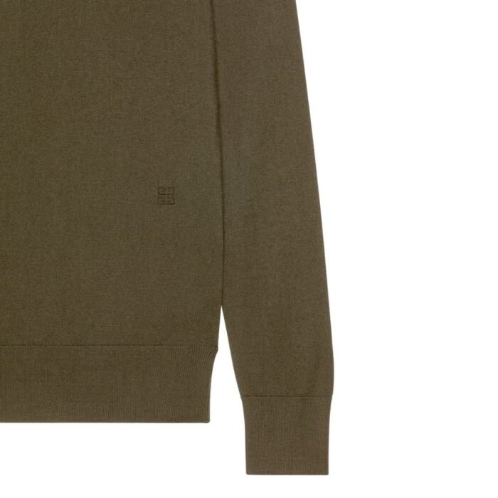 The sweater features a classic design with a modern twist. Its silhouette is streamlined and fitted, creating a flattering shape that enhances the wearer’s figure without being overly snug. The ribbed crew neckline, cuffs, and hemline provide a polished finish and ensure the sweater retains its shape over time. The subtle Givenchy logo is discreetly embroidered on the chest, adding a touch of brand recognition without overwhelming the minimalist aesthetic.