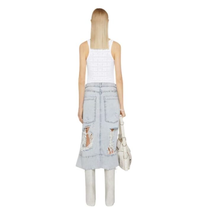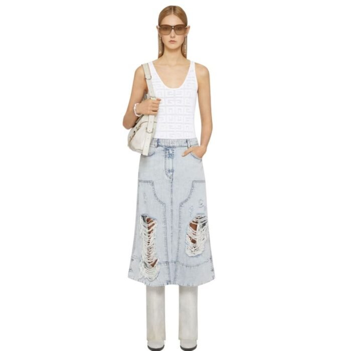 Introducing the Givenchy Tank Top In 4G Jacquard is a sleek and modern essential, marrying the brand’s iconic design with contemporary flair. Crafted from high-quality jacquard fabric, this tank top features the signature 4G logo pattern woven into the fabric, adding a touch of luxury and sophistication to the piece. The clean lines and minimalist silhouette make it a versatile wardrobe staple, perfect for layering or wearing on its own. Whether paired with tailored trousers for a polished daytime look or styled with denim for a casual yet chic ensemble, this Givenchy tank top effortlessly combines comfort, style, and unmistakable luxury, making it a must-have for fashion-forward individuals.