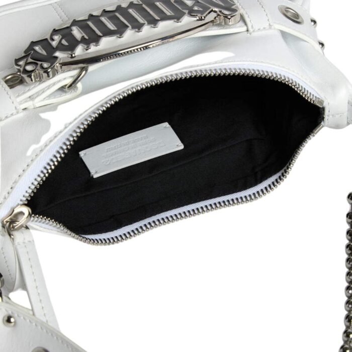 The adjustable strap of the Gothic DSquared2 Belt Bag allows for a customized fit, whether worn high on the waist or slung casually over the shoulder. The strap is often adorned with additional branding and gothic motifs, further emphasizing the bag’s unique aesthetic.