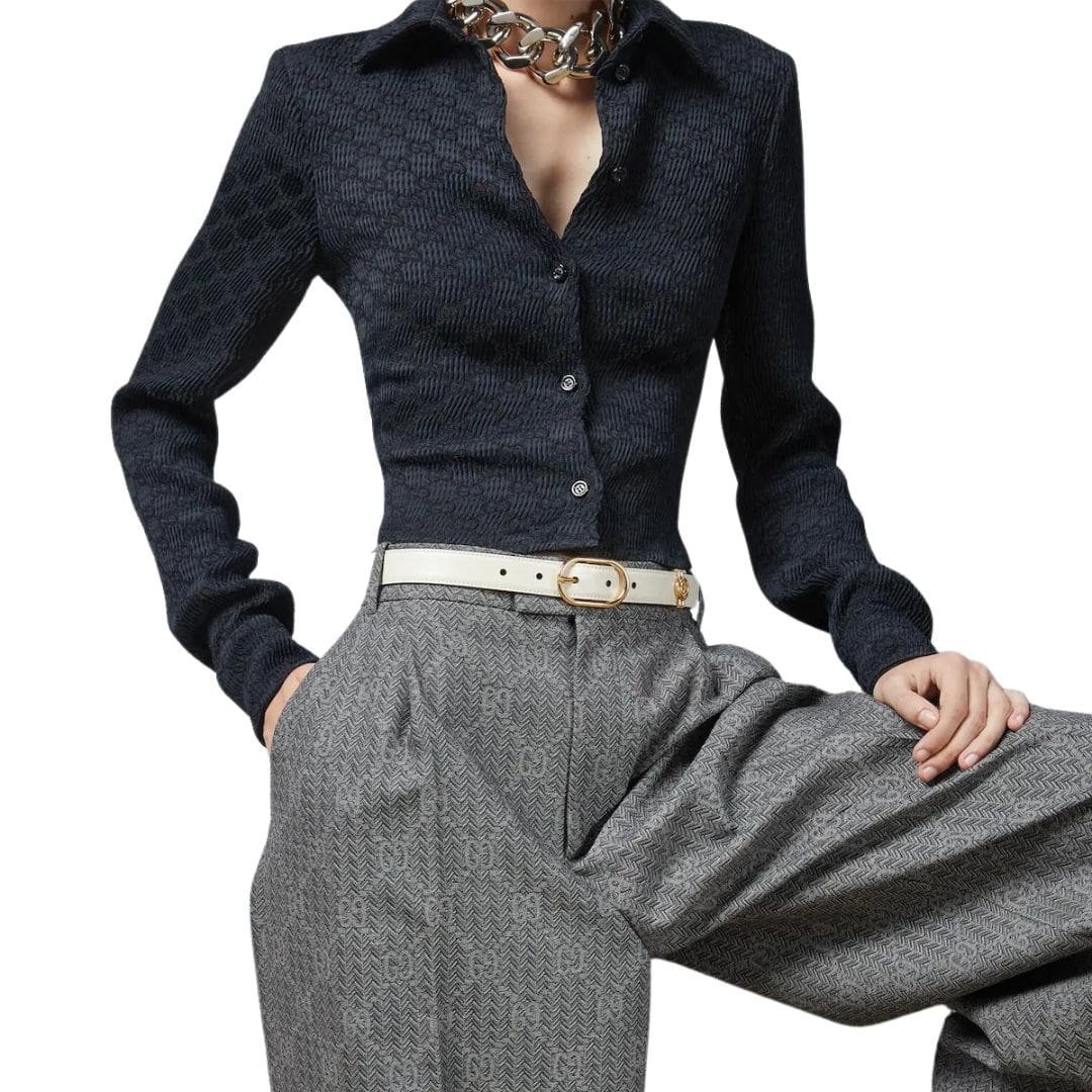 The focal point of this belt is its oval buckle, a timeless emblem of sophistication and elegance. Complemented by the Round Interlocking G belt loop detail, this accessory pays homage to the brand’s heritage while infusing your look with a touch of iconic flair.