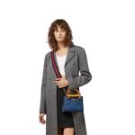 The bag’s design is further enhanced by its gold-toned hardware, which includes the signature double G logo prominently displayed on the front. This logo serves as a testament to Gucci’s rich heritage and commitment to quality. The interior of the bag is thoughtfully designed to maximize space despite its mini size. It features a single compartment lined with soft microfiber fabric, complete with a zip pocket and open pockets to keep essentials organized and easily accessible.