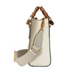 The design of the Gucci Diana Small Tote Bag is a modern reinterpretation of the classic bamboo handle bag, first introduced by the brand in the 1940s. The most distinctive feature of this tote is its bamboo handles, which have been a symbol of Gucci’s craftsmanship and creativity for decades. These handles are meticulously hand-burnished by skilled artisans, resulting in a unique, natural finish that adds an organic touch to the sophisticated silhouette of the bag.
