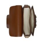 The bag features a versatile, adjustable shoulder strap, allowing it to be worn comfortably across the body or over the shoulder. This adaptability makes it perfect for both day and night occasions, seamlessly transitioning from casual outings to elegant evenings. The strap is also adorned with subtle yet distinctive gold-tone hardware, complementing the overall aesthetic of the bag.