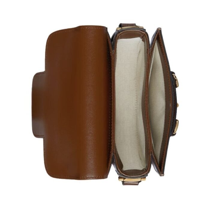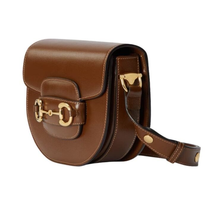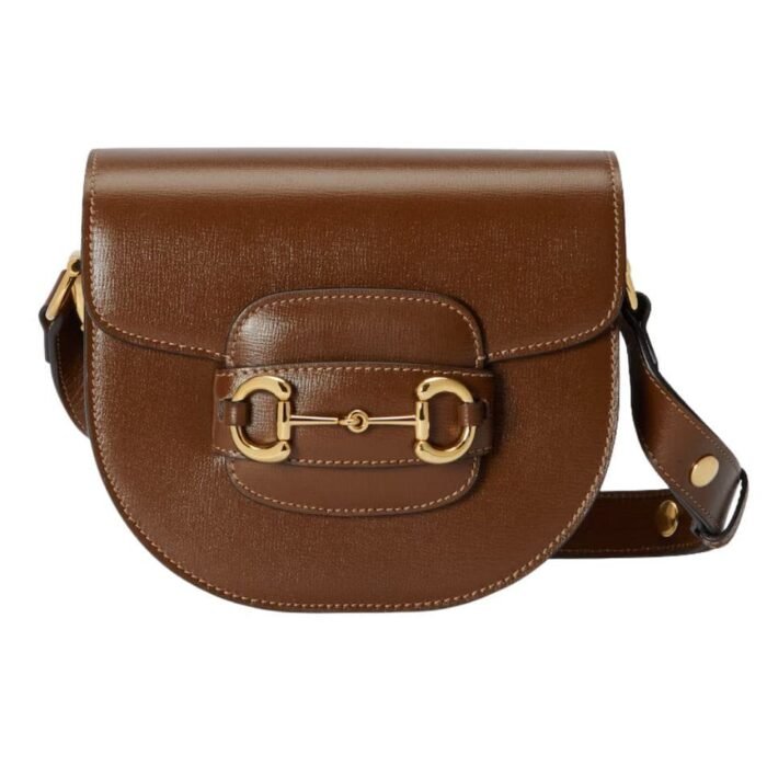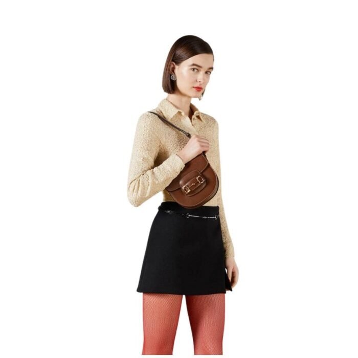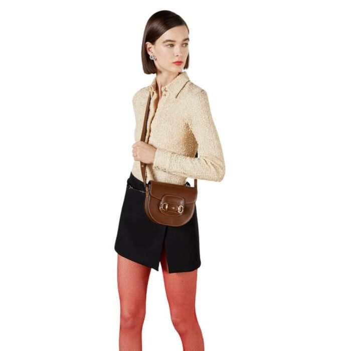 The bag’s design is inspired by archival elements, featuring the iconic horsebit hardware, which has been a hallmark of Gucci’s collections since the 1950s. This signature detail is prominently displayed on the front, adding a touch of heritage to the modern silhouette. The horsebit hardware is polished to perfection, offering a striking contrast against the bag’s luxurious leather. GUCCI HORSEBIT 1955 MINI ROUNDED BAG