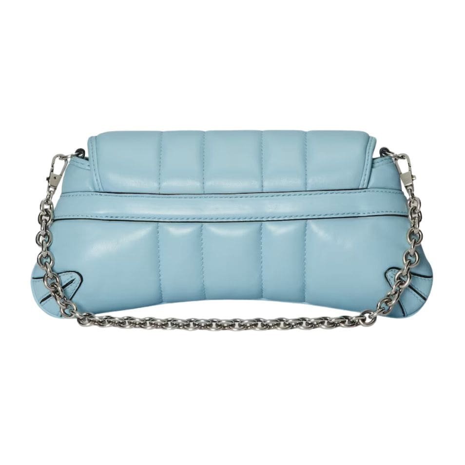 The standout feature of this bag is the distinctive horsebit hardware, a nod to Gucci’s equestrian roots. This polished metal embellishment sits prominently on the front flap, adding a touch of opulence and vintage charm to the overall design. The horsebit detail is elegantly integrated with a slim chain strap, which can be worn on the shoulder or across the body for versatile styling options. The chain is carefully crafted to ensure comfort and durability, making it a practical choice for everyday use. GUCCI HORSEBIT CHAIN SMALL SHOULDER BAG