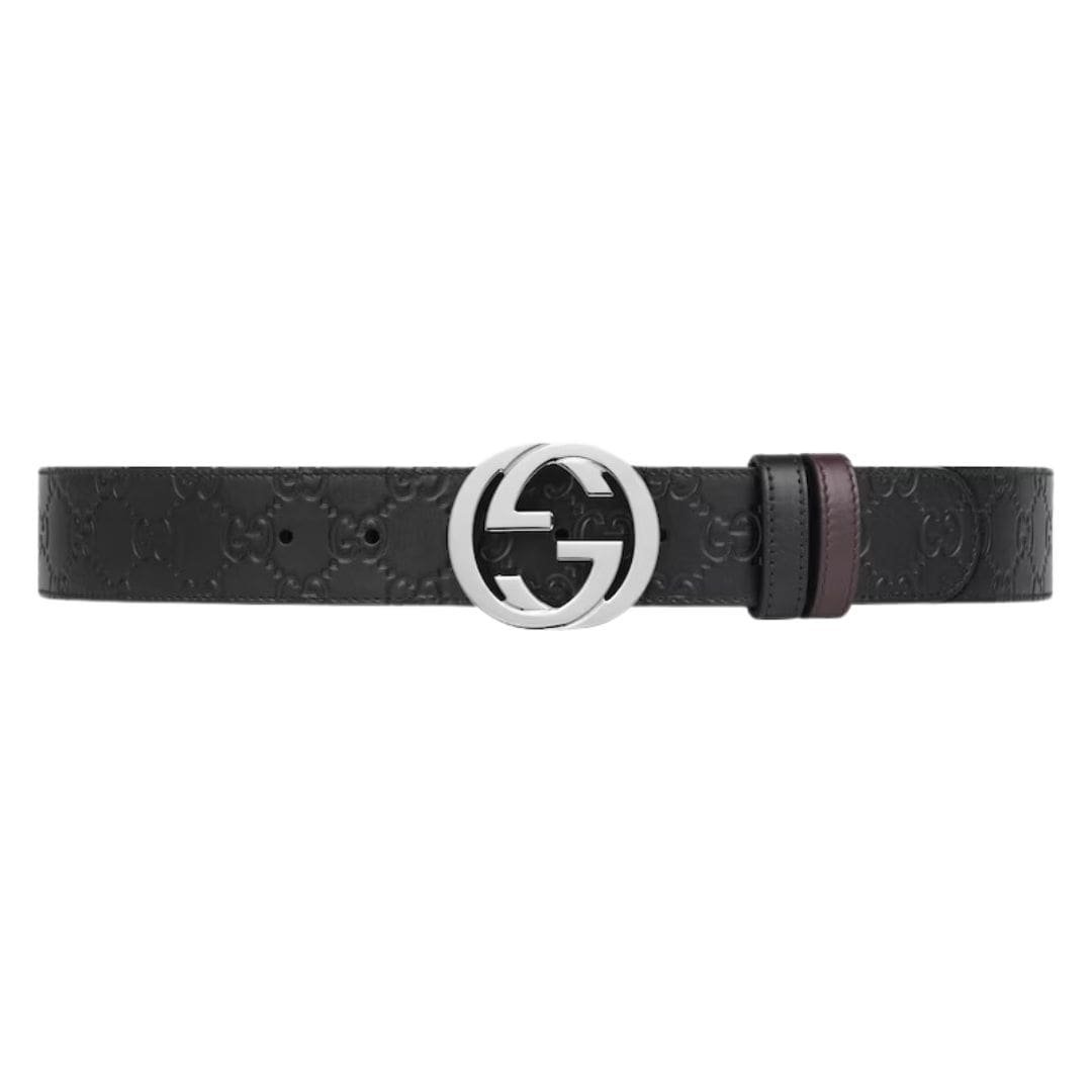At Gucci, our commitment to innovation and quality craftsmanship, a versatile accessory that seamlessly combines style and functionality. This reversible belt is crafted from Gucci Reversible Signature Belt In Black leather on one side and solid leather on the reverse, offering two distinct looks in one accessory.