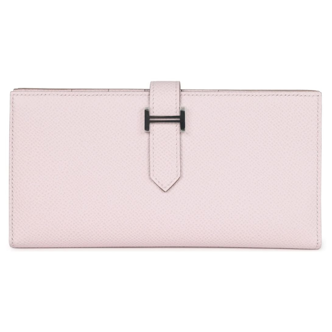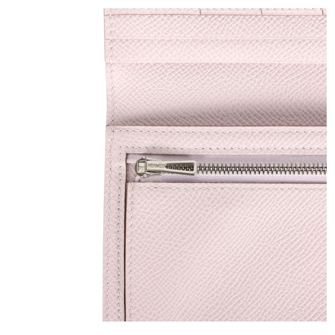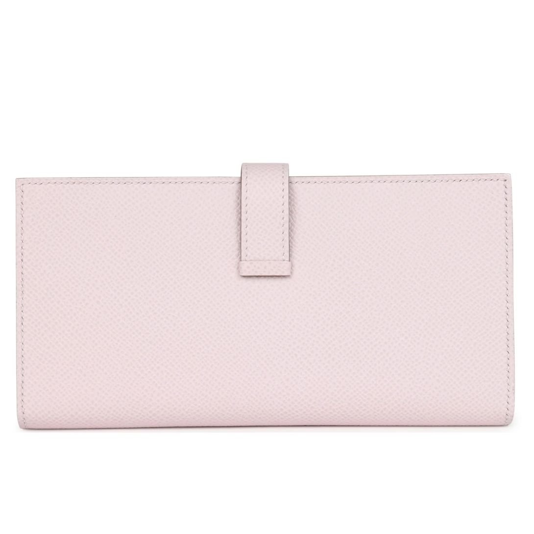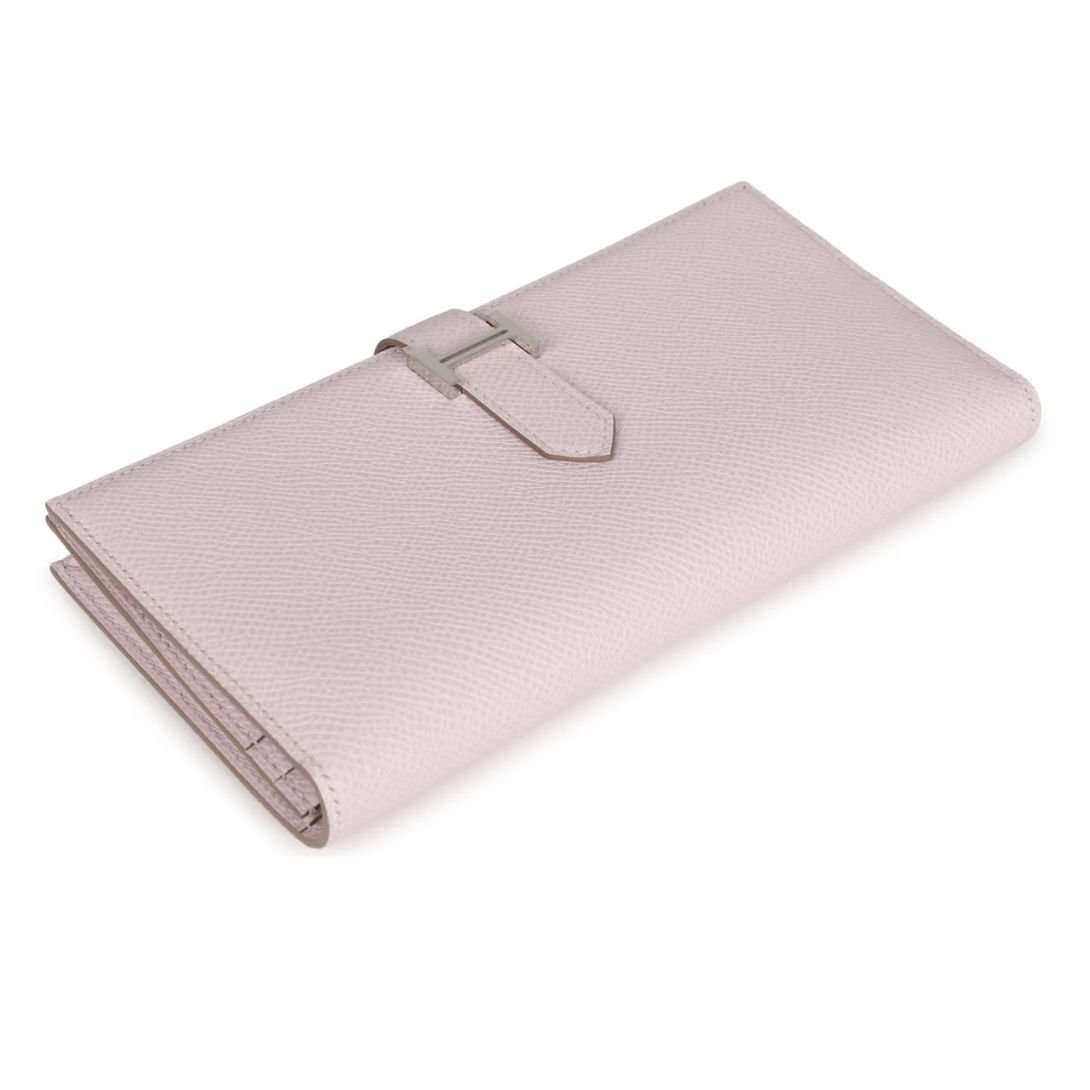 This Bearn Gusset Long Wallet in Mauve Pale Epsom leather with palladium hardware is a sleek and timeless accessory, showcasing Hermès’ renowned craftsmanship and understated elegance.