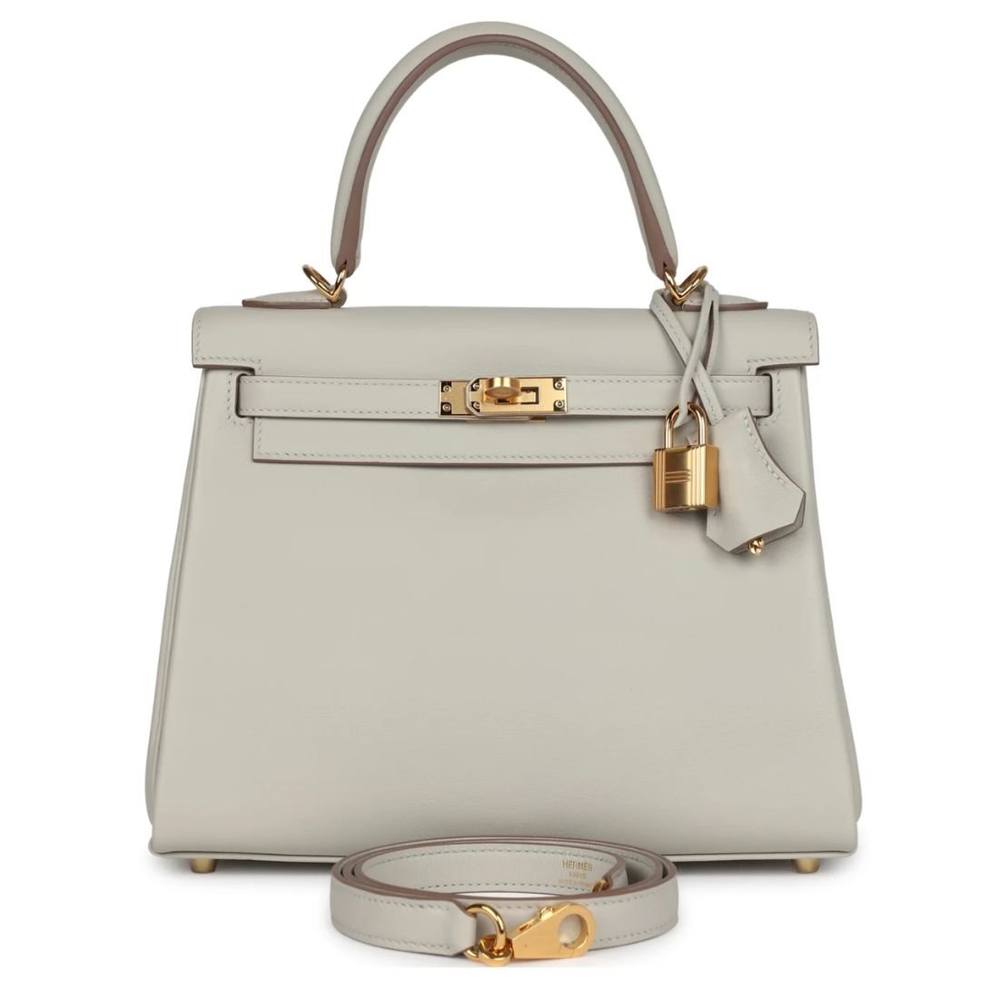 HERMÈS KELLY RETOURNE 25 GRIS PERLE SWIFT GOLD HARDWARE