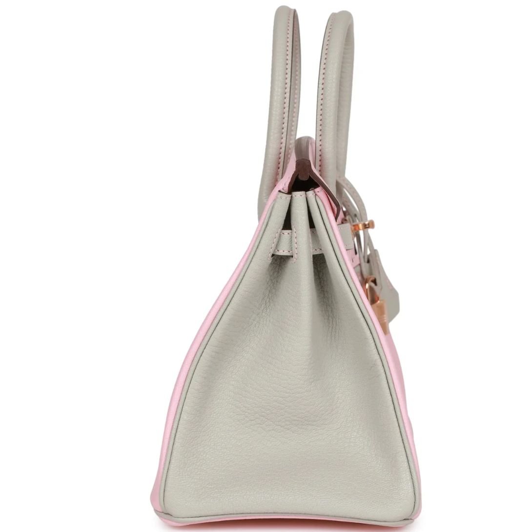 This Special Order Birkin in Rose Sakura and Gris Perle Chevre leather with rose gold hardware is a rare and highly coveted piece, combining both practicality and luxury. Its versatile colors and classic design make it an investment piece that will remain timeless and perfect for any occasion.