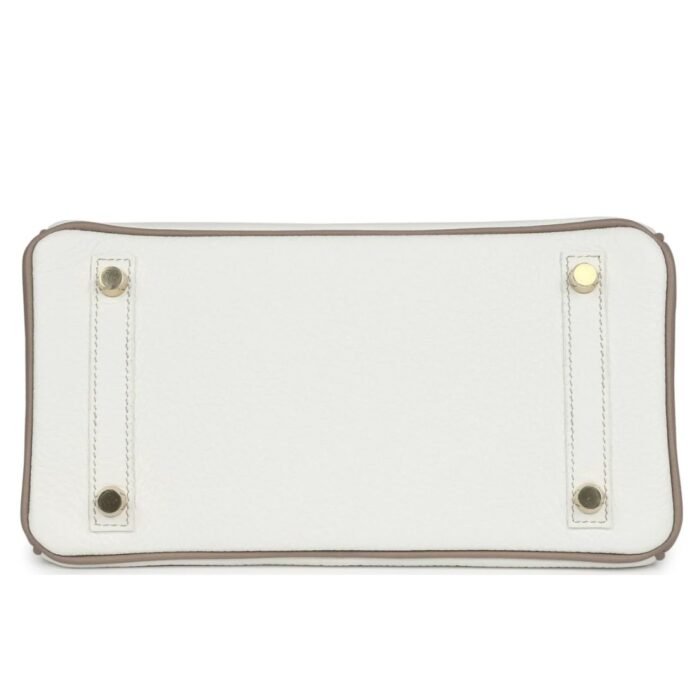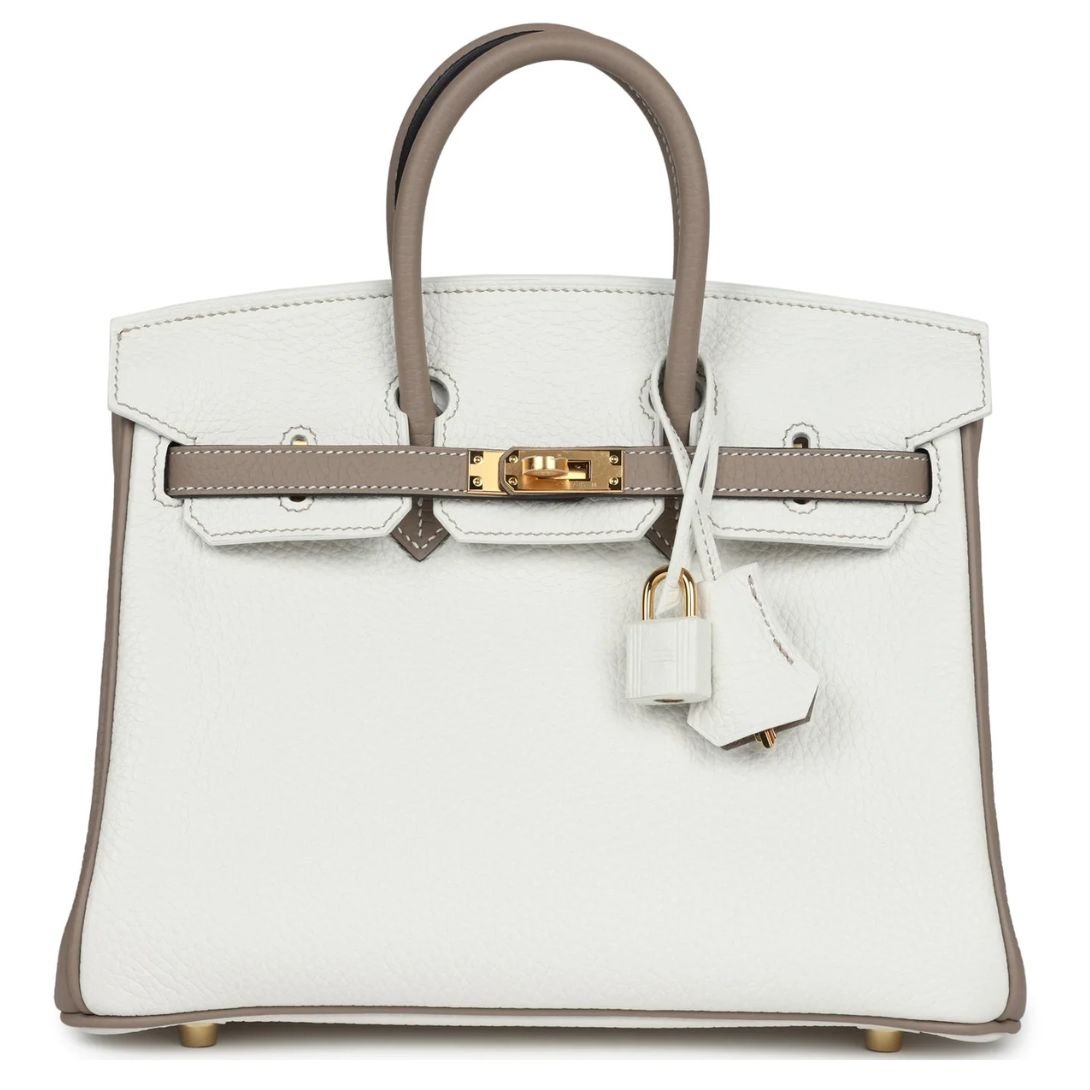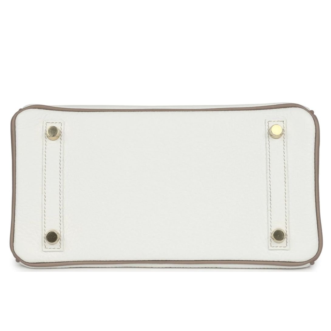HERMÈS SPECIAL ORDER (HSS) BIRKIN 25 WHITE AND GRIS TOURTERELLE CLEMENCE GOLD HARDWARE