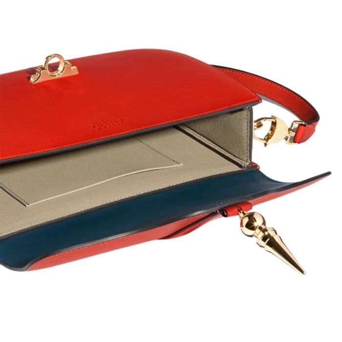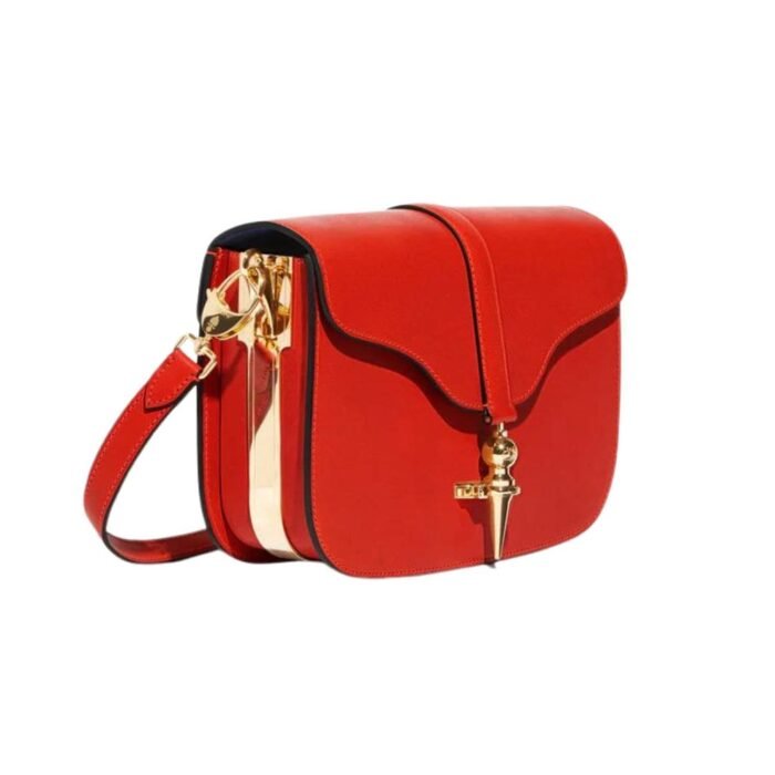 The exterior of the bag showcases a sleek, streamlined silhouette with a subtle embossed logo that adds a touch of luxury without overwhelming the design. The adjustable leather shoulder strap provides comfort and versatility, allowing you to wear the bag across your body or on your shoulder with ease. For added convenience, the bag also features a top handle, offering an alternative carrying option when needed.