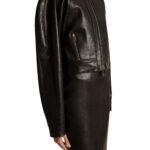 Constructed from supple black leather, the jacket exudes a sense of understated luxury. The high-quality leather not only adds a touch of opulence but also promises durability and longevity, ensuring that it becomes a cherished wardrobe staple for years to come. The rich black hue enhances the jacket’s versatility, allowing it to seamlessly transition from day to night and effortlessly complement a myriad of ensembles.