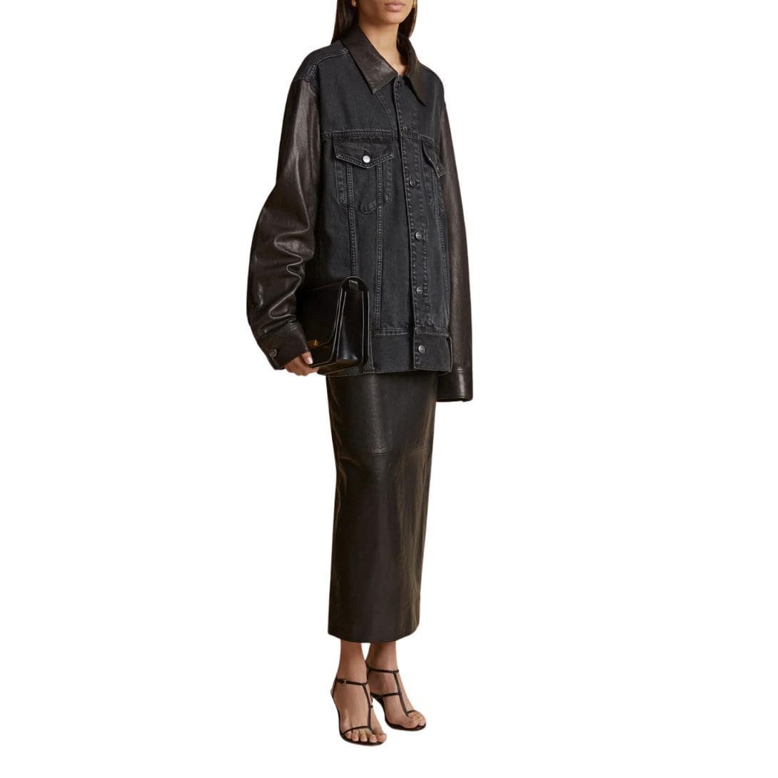 KHAITE THE GRIZZO JACKET IN PRESCOT AND BLACK LEATHER