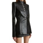 Embodying the brand’s ethos of modern luxury and understated sophistication, the Khaite Samuel Jacket in black leather is a wardrobe essential for the discerning fashion enthusiast, promising to imbue every look with effortless style and allure.