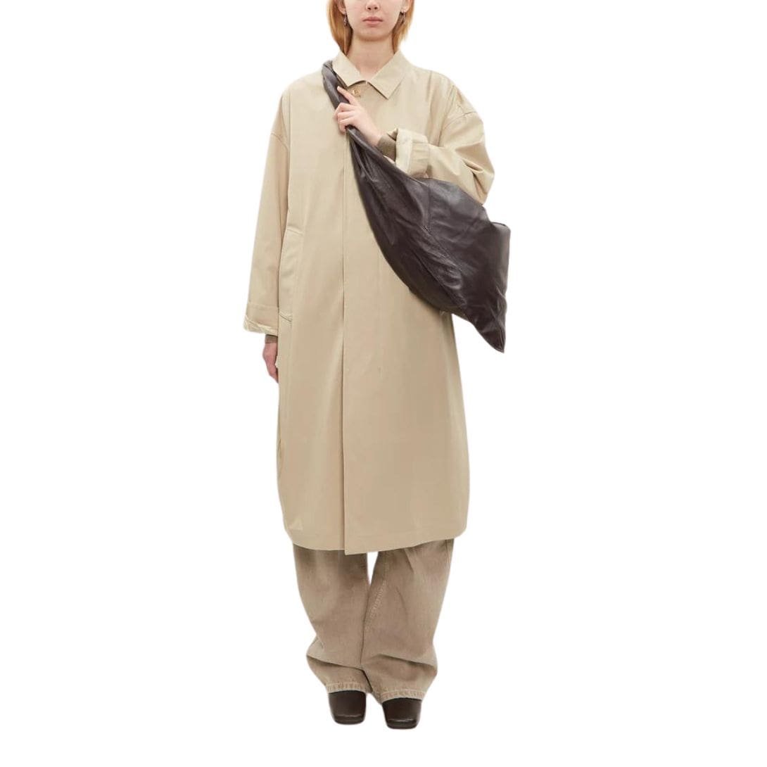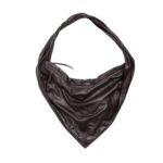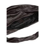 La Garconne Lemaire Scarf Bag Features an oversized scarf silhouette in espresso brown smooth nappa leather with a shiny finish. It includes a twisted strap, a tassel zip-top pull, and silver-tone metal hardware at the zip-top closure. The bag has a single interior pocket and is fully lined in contrasting black fabric.