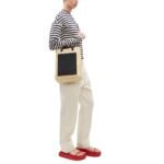 La Garconne Plan C Straw Medium Shopper bag is expertly crafted from wheat straw, exuding a natural charm. It features a short leather handle, an adjustable and removable strap, and an interior cotton pouch with a rope drawstring closure.