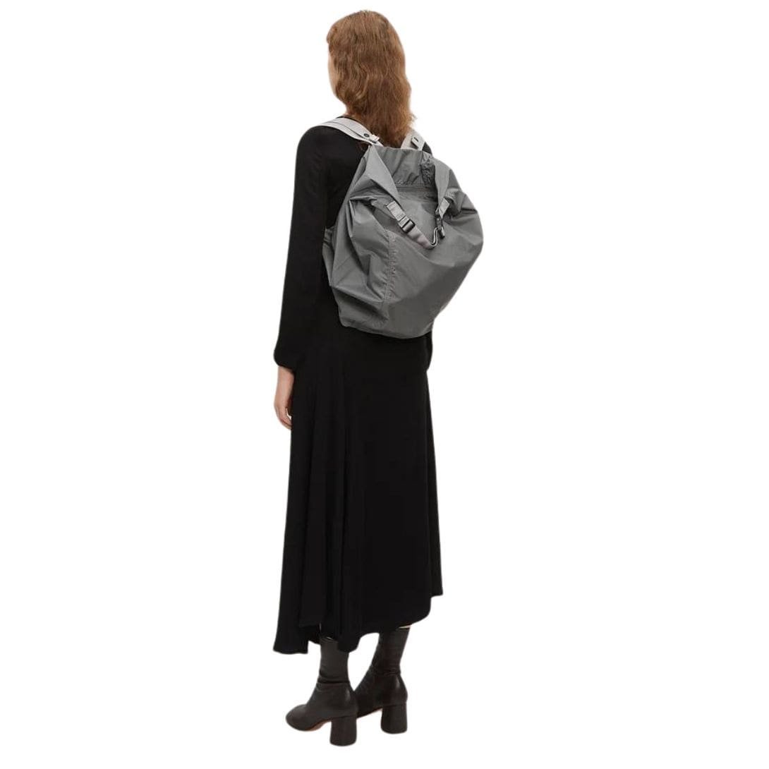La Garconne Porter – Yoshida & Co Small Flex Bonsac packable two-way bag made of nylon ripstop, featuring a short top handle and backpack straps. Includes an adjustable top handle with buckle fastening, a tonal top zipper, and a single interior zip pocket. The bag can be packed into the interior zip pocket for compact storage.