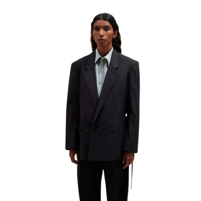 The design of the jacket is characterized by its clean lines and minimalist aesthetic, which are signature elements of Lemaire’s design philosophy. The tailored silhouette offers a flattering fit that contours to the body’s natural shape, providing a sleek and polished look. The jacket features a notched lapel, which adds a classic touch to its modern design.