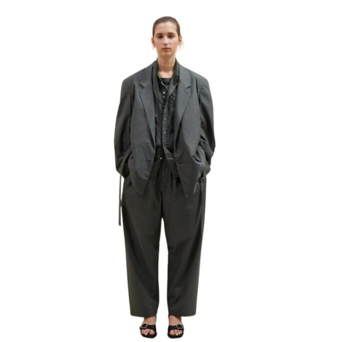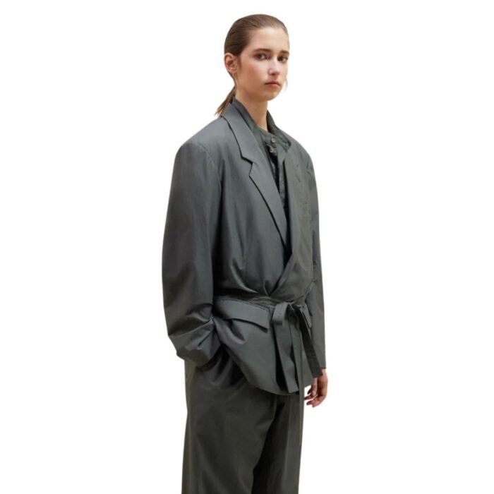 In essence, the Lemaire Belted Light Tailored Jacket exemplifies the brand’s philosophy of understated luxury and timeless style. It combines a contemporary cut with traditional craftsmanship, resulting in a piece that is both fashionable and enduring. Whether worn over a suit for a sophisticated look or paired with casual attire for a relaxed vibe, this jacket proves to be a valuable addition to any wardrobe, reflecting Lemaire’s dedication to creating garments that are both elegant and practical.