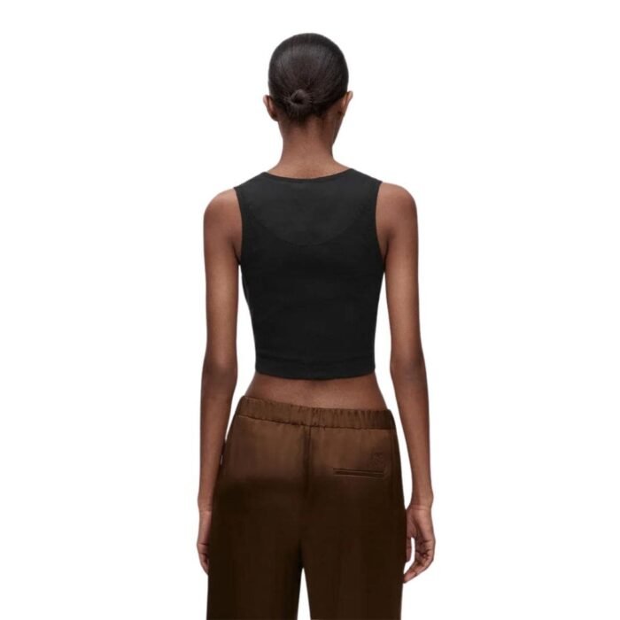 Whether paired with high-waisted jeans, skirts, or shorts, the Loewe Anagram Crop Tank Top in cotton elevates casual ensembles with its effortless style and comfort. It embodies the brand’s ethos of combining luxury with everyday wearability, making it a go-to choice for fashion-forward individuals seeking both elegance and ease in their attire.
