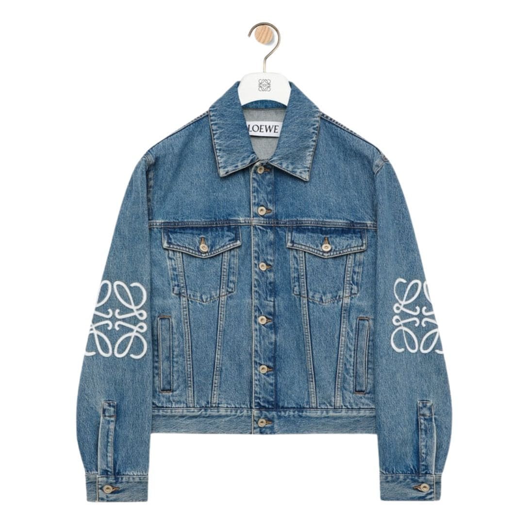 The design of the LOEWE Anagram Jacket in denim is both timeless and modern. The clean lines and minimalist aesthetic are complemented by the subtle presence of the anagram motif. This creates a piece that is both understated and distinctive, making it a versatile addition to any wardrobe. The jacket can be dressed up or down, making it suitable for a range of occasions, from casual outings to more formal events.
