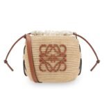 LOEWE BEEHIVE BASKET BAG IN RAFFIA AND CALFSKIN
