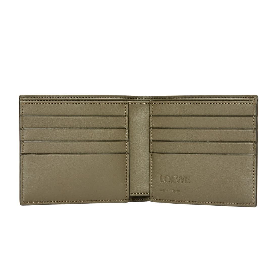 The Loewe bifold wallet in satin calfskin leather combines luxurious texture with practical functionality. Weighing just 0.08 kg, this lightweight wallet is crafted from premium satin calfskin leather, offering a refined touch and durability.