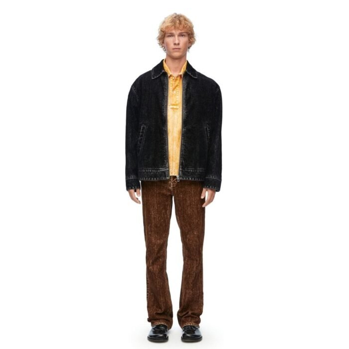 Additionally, the jacket’s fit is tailored to offer a modern silhouette without compromising comfort. It can be layered over a simple tee or a more polished shirt, making it a versatile addition to any wardrobe. Loewe’s attention to craftsmanship is evident in every stitch, ensuring that the bomber jacket not only looks great but also stands the test of time. Whether worn in a casual setting or as part of a more dressed-up ensemble, the Loewe bomber jacket in denim is a statement piece that embodies both luxury and practicality.