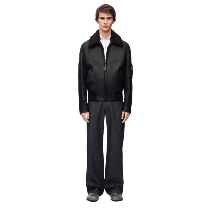 In essence, Loewe’s bomber jacket in nappa lambskin leather epitomizes the brand’s commitment to high-quality materials and sophisticated design. It is more than just a piece of outerwear; it is a statement of elegance and modernity, reflecting Loewe’s dedication to creating timeless fashion pieces that remain relevant across seasons and trends.