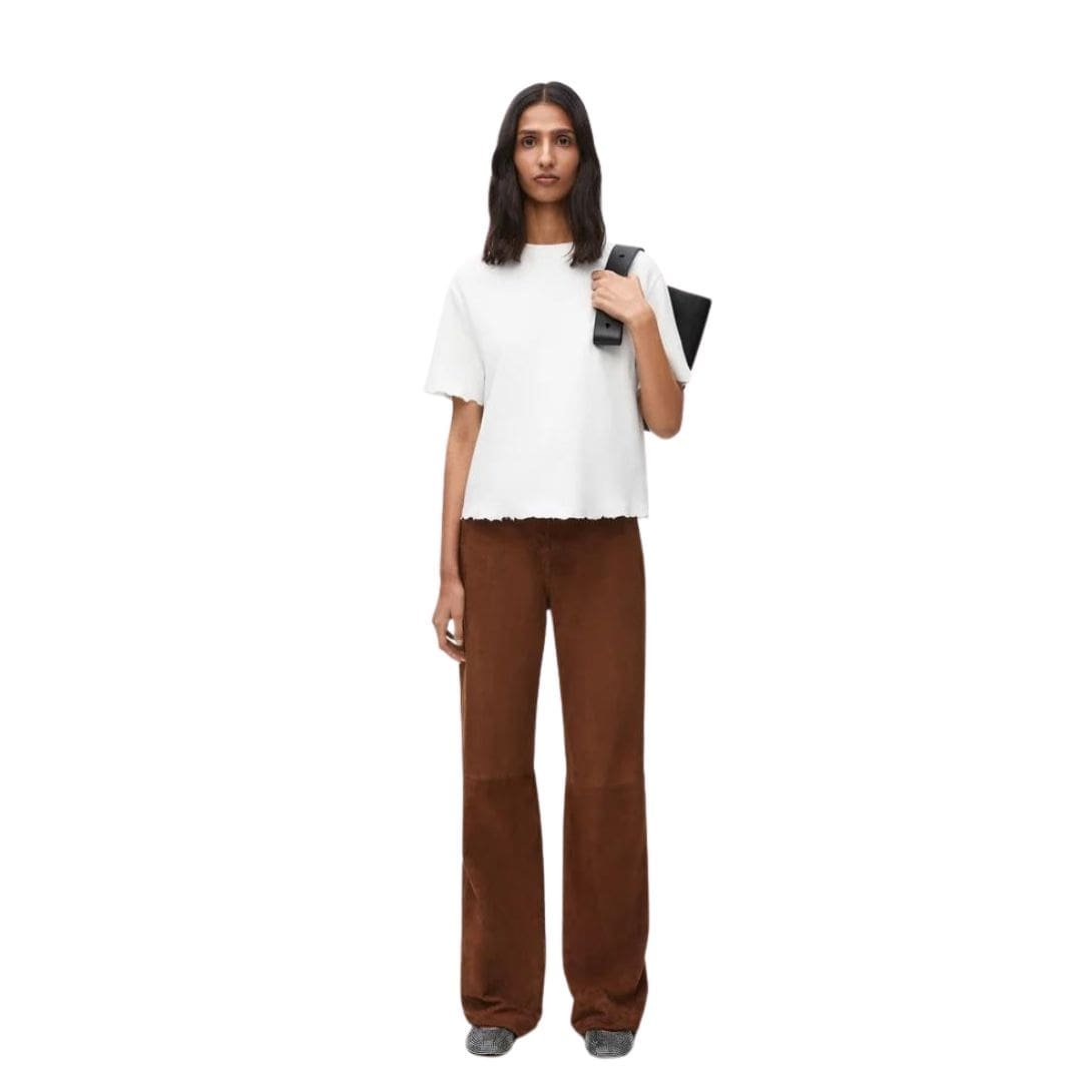The standout feature of this t-shirt is its boxy fit silhouette, which exudes effortless style and modern flair. The relaxed shape offers a laid-back yet refined aesthetic, perfect for casual outings or layering under jackets for a more structured look. This design reflects Loewe’s commitment to contemporary fashion, combining comfort with a distinctive silhouette.