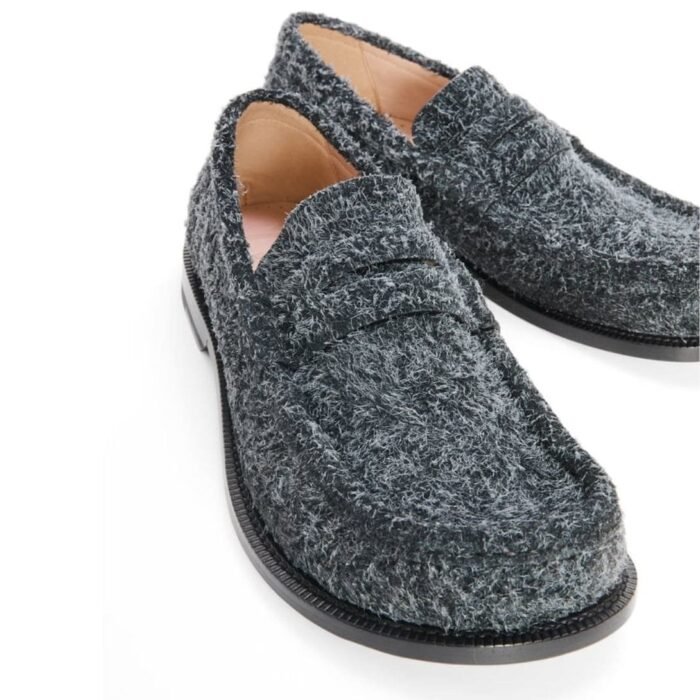 At first glance, the Loewe Campo Loafer catches the eye with its sleek silhouette and minimalist detailing. The suede’s brushed finish enhances its softness and depth, offering a tactile experience that is both luxurious and comfortable. The loafer features a rounded toe and a low stacked heel, combining traditional styling with modern sensibilities.