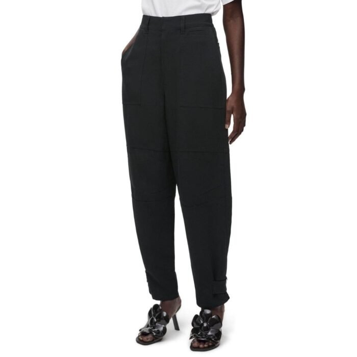 The trousers’ color palette typically features muted, earthy tones, reflecting Loewe’s subtle yet sophisticated aesthetic. This allows for easy pairing with various tops and accessories, making them a practical yet stylish choice for numerous occasions. Whether dressed up with a blazer for a polished look or worn casually with a t-shirt, Loewe’s cargo trousers seamlessly integrate functionality with a modern edge.