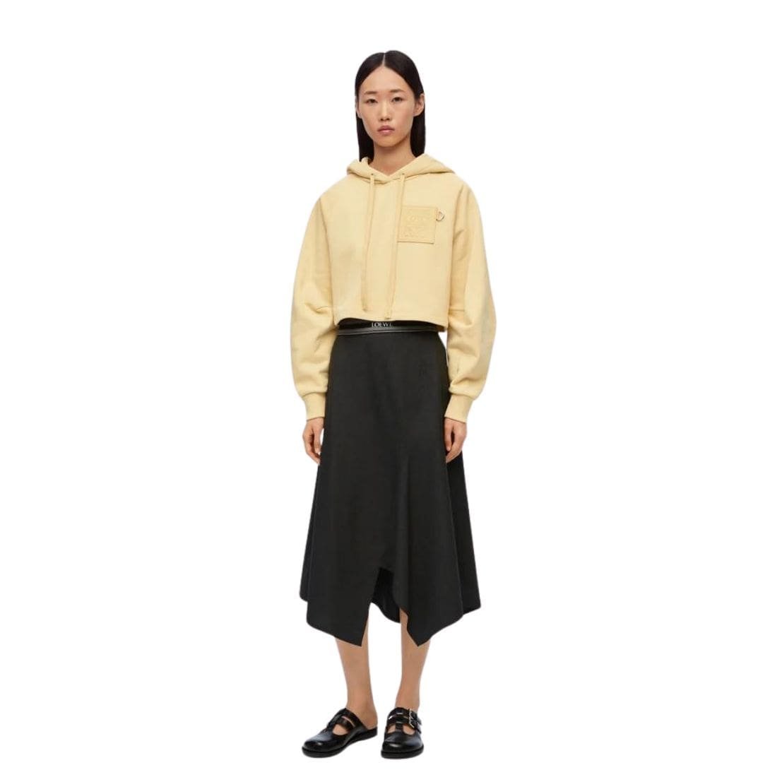 The Loewe cropped cotton hoodie is a perfect blend of modern style and comfortable functionality, crafted from high-quality cotton. This hoodie is designed to cater to those who appreciate both fashion and comfort in their everyday wear.