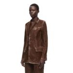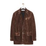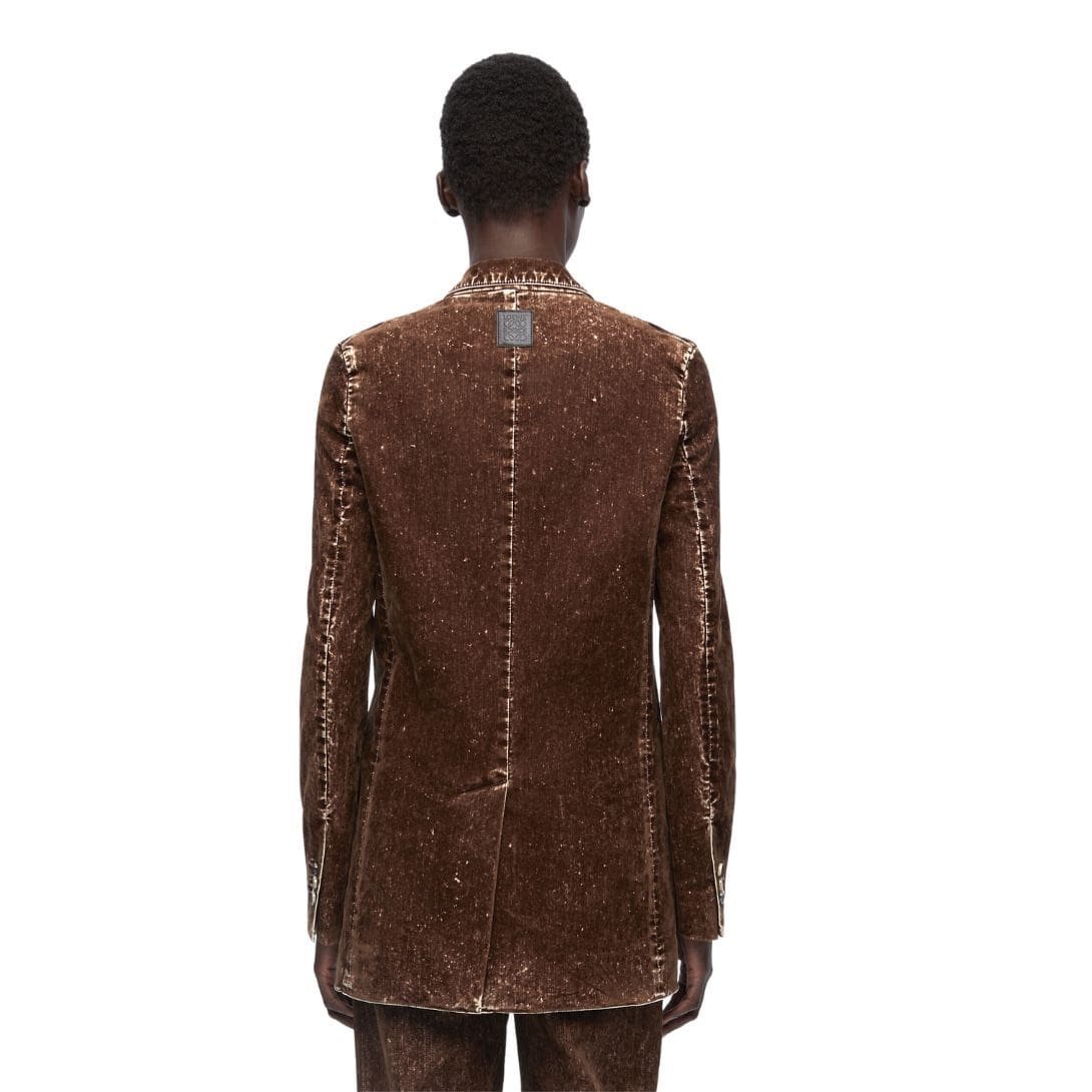 Craftsmanship is evident in every detail of the blazer. LOEWE’s commitment to quality is reflected in the precise stitching, tailored seams, and premium hardware. The cotton-elastane blend is treated to maintain its shape and color, ensuring longevity and durability.