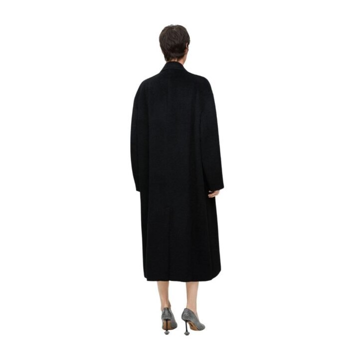 In summary, Loewe’s double-breasted coat in dark chocolate llama and wool is a testament to the brand’s commitment to luxury and craftsmanship. With its premium materials and timeless design, it offers a sophisticated outerwear option that transcends seasonal trends, making it a valuable investment for discerning fashion enthusiasts.