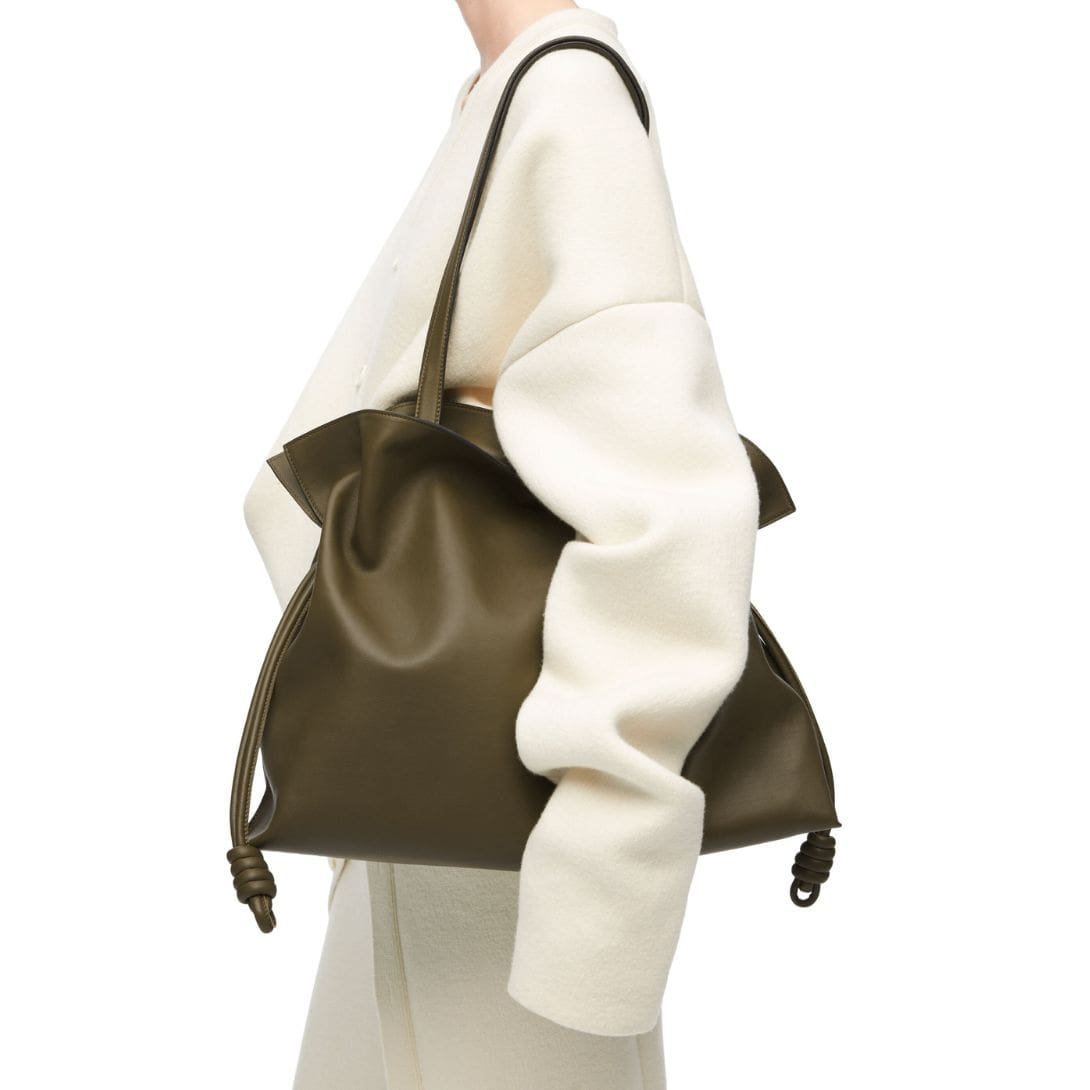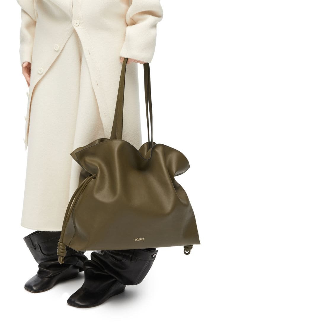 The Flamenco Clutch XL Bag also includes LOEWE’s signature design elements, such as the distinctive knot detailing, which adds a touch of uniqueness and flair. This subtle yet eye-catching feature underscores the brand’s commitment to craftsmanship and innovative design, setting this bag apart as a true statement piece.