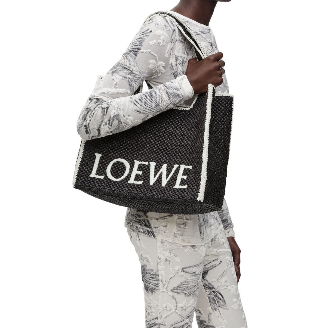 LOEWE FONT TOTE LARGE BAG IN RAFFIA