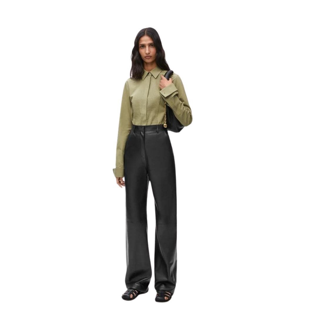 In summary, the LOEWE High Waisted Trousers in Nappa lambskin leather combine luxury with timeless elegance. They appeal to individuals seeking a wardrobe staple that merges comfort with impeccable style. Ideal for enhancing any wardrobe with a sophisticated touch, these trousers exemplify LOEWE’s commitment to creating fashion pieces that blend craftsmanship with contemporary sensibilities.
