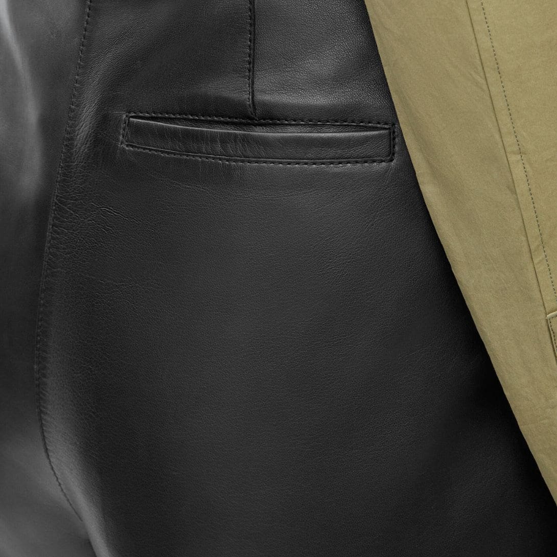 Versatility is a hallmark of these trousers, owing to their minimalist design and neutral color options. They seamlessly complement various wardrobe choices and styling preferences, transitioning effortlessly from day to night. The inherent richness of Nappa lambskin adds a touch of opulence to any outfit, making these trousers a standout piece for those who appreciate refined fashion.